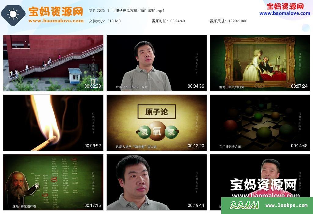 天天资源网收录的纪录片《门捷列夫很忙》,全部5集,国语发音,中文字幕;资源总大小约1.66G,单集播放时长约24分钟,1080P高清MP4视频格式,可以在电视机或电脑、平板、IPAD、早教机、手机等各种智能设备播放,提供百度云网盘下载。