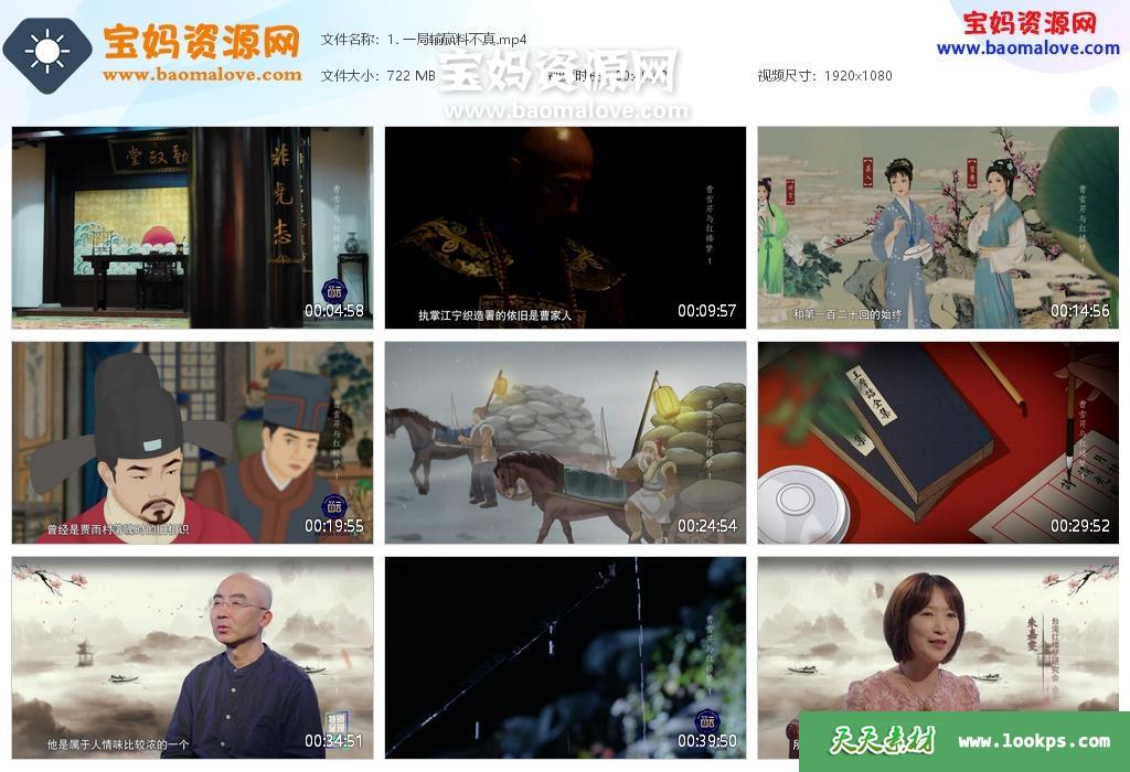 天天资源网收录的纪录片《曹雪芹与红楼梦》,全部6集,国语发音,中文字幕;资源总大小约3.99G,单集播放时长约50分钟,1080P高清MP4视频格式,可以在电视机或电脑、平板、IPAD、早教机、手机等各种智能设备播放,提供百度云网盘下载。