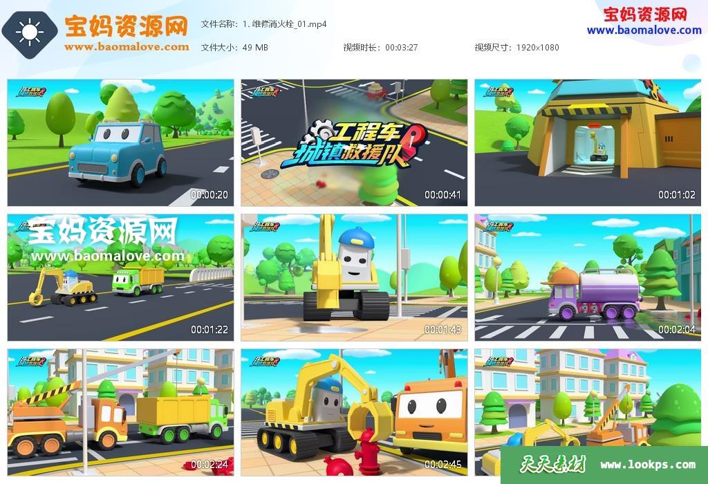 天天资源网收录的动画片《工程车城镇救援队》,全部52集,国语发音,无字幕;资源总大小1.21G,单集播放时长约3分钟,1080P高清MP4视频格式,可以在电视机或电脑、平板、IPAD、早教机、手机等各种智能设备播放,提供百度云网盘下载。