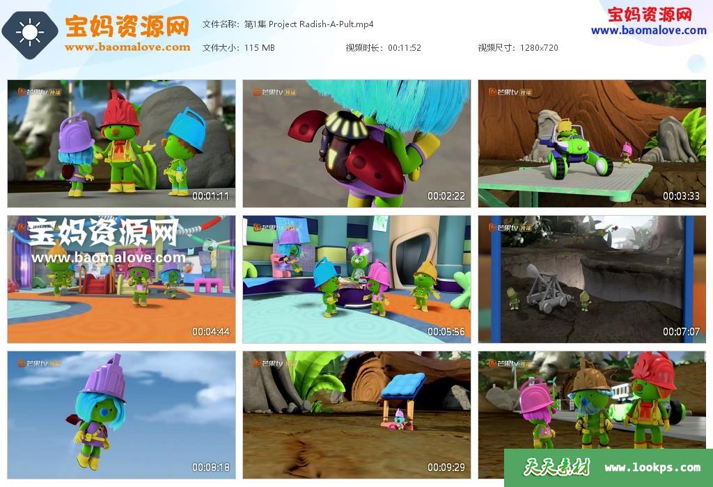 天天资源网收录的动画片《DOOZERS》豆荚行动队英文版,全部52集,英语发音,无字幕;资源总大小3.79G,单集播放时长约12分钟,720P高清MP4视频格式,可以在电视机或电脑、平板、IPAD、早教机、手机等各种智能设备播放,提供百度云网盘下载。