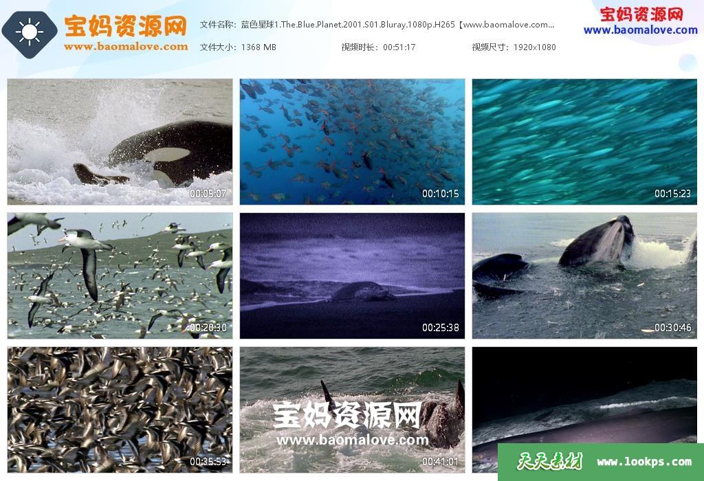 天天资源网收录的纪录片《蓝色星球 The Blue Planet》第一季,全部8集,英语发音,内置中英文字幕(可以下载后使用播放器选择字幕或者关闭字幕);资源总大小10.6G,单集播放时长约51分钟,1080P高清MKV视频格式,可以在电视机或电脑、平板、IPAD、早教机、手机等各种设备播放,提供百度云网盘下载。