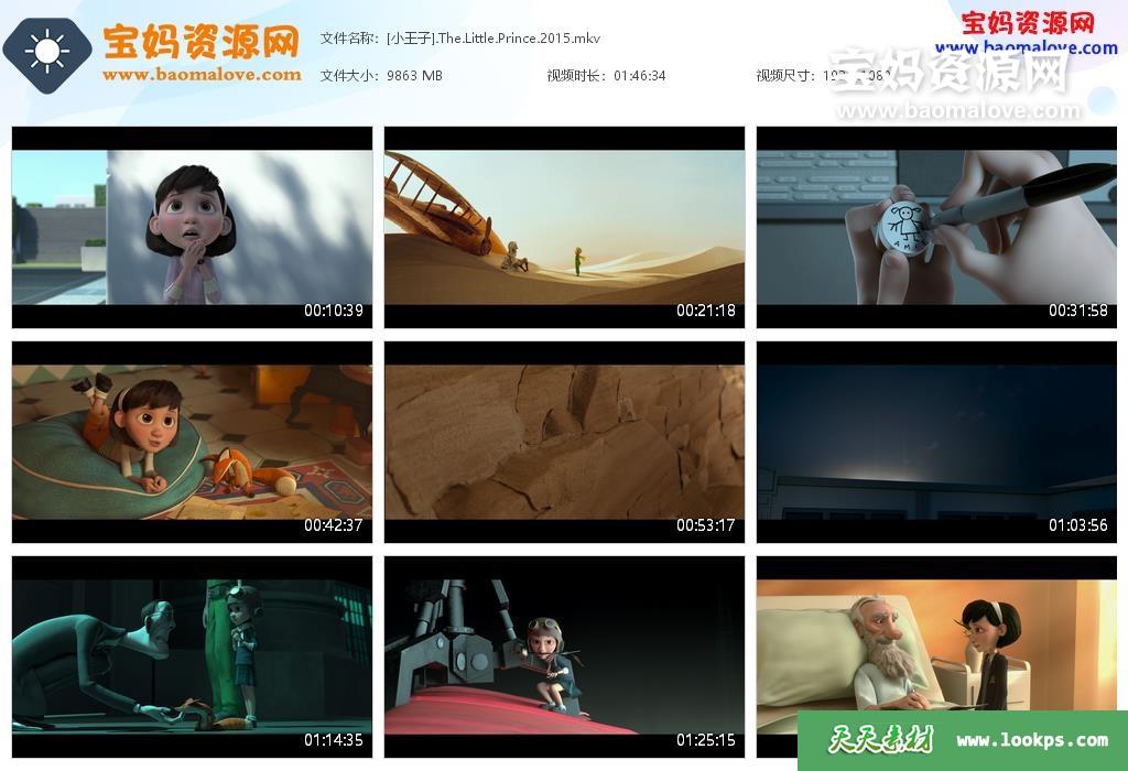 天天资源网收录的动画电影《小王子 Le Petit Prince》,国语/法语/英语三语发音,内置中英文字幕(可以下载后使用播放器选择设置字幕或者关闭字幕);资源大小约9.63G,1080P高清MKV视频格式,可以在电视机或电脑、平板、IPAD、早教机、手机等各种智能设备播放,提供百度云网盘下载。