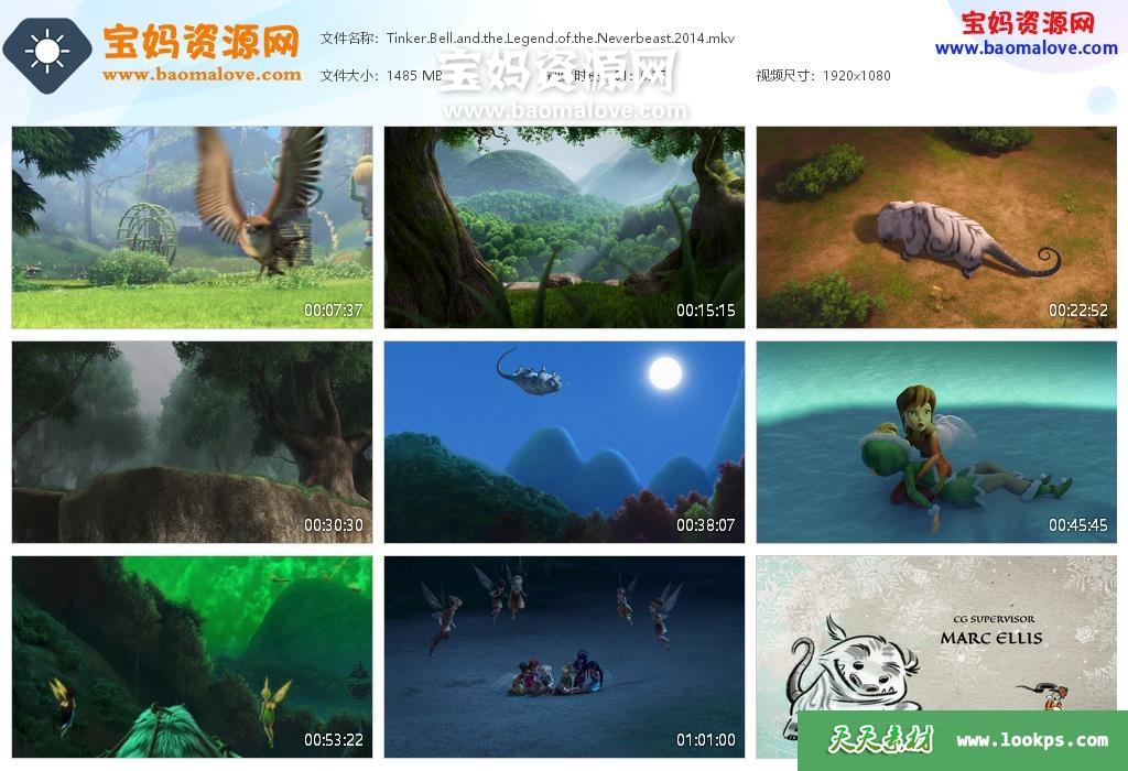天天资源网收录的动画电影《小叮当:永无兽传奇 Tinker Bell and the Legend of the NeverBeast》,英语发音,内置中英文字幕(可以下载后使用播放器设置字幕字体大小颜色或者关闭字幕);资源大小约1.45G,1080P高清MKV视频格式,可以在电视机或电脑、平板、IPAD、早教机、手机等各种智能设备播放,提供百度云网盘下载。