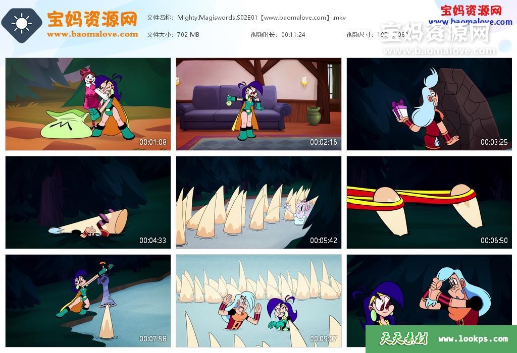 天天资源网收录的动画片《Mighty Magiswords》超级神剑英文版 第二季,全部40集,英语发音,内置英文字幕(可以下载后使用播放器选择设置字幕或者关闭字幕);资源总大小27.3G,单集播放时长约11分钟,1080P高清MKV视频格式,可以在电视机或电脑、平板、IPAD、早教机、手机等各种设备播放,提供百度云网盘下载。