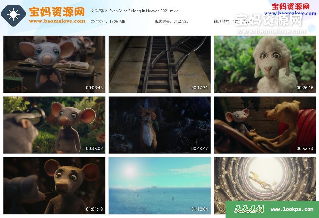 天天资源网收录的动画电影《老鼠也能上天堂 I mysi patrí do nebe》,英语发音,内置英文字幕(可以下载后使用播放器设置字幕字体大小颜色或者关闭字幕);资源大小约1.66G,1080P高清MKV视频格式,可以在电视机或电脑、平板、IPAD、早教机、手机等各种智能设备播放,提供百度云网盘下载。
