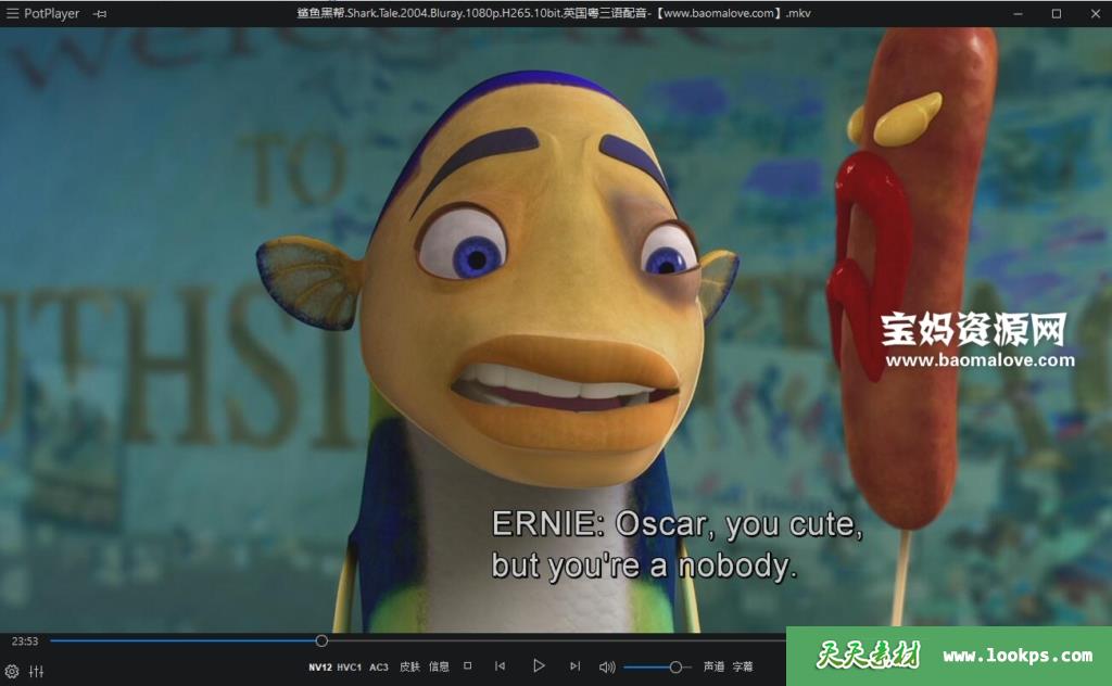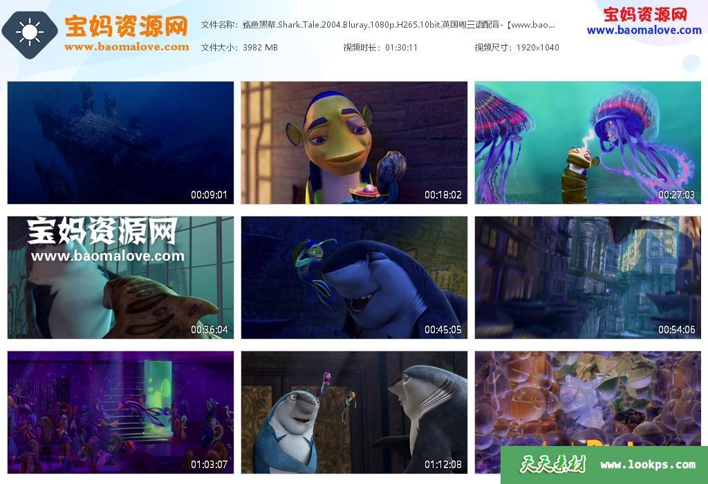 天天资源网收录的动画电影《鲨鱼黑帮 Shark Tale》,台配国语/粤语/英语三语发音,内置中英文字幕(可以下载后使用播放器选择设置字幕或者关闭字幕);资源大小约3.88G,1080P高清MKV视频格式,可以在电视机或电脑、平板、IPAD、早教机、手机等各种智能设备播放,提供百度云网盘下载。