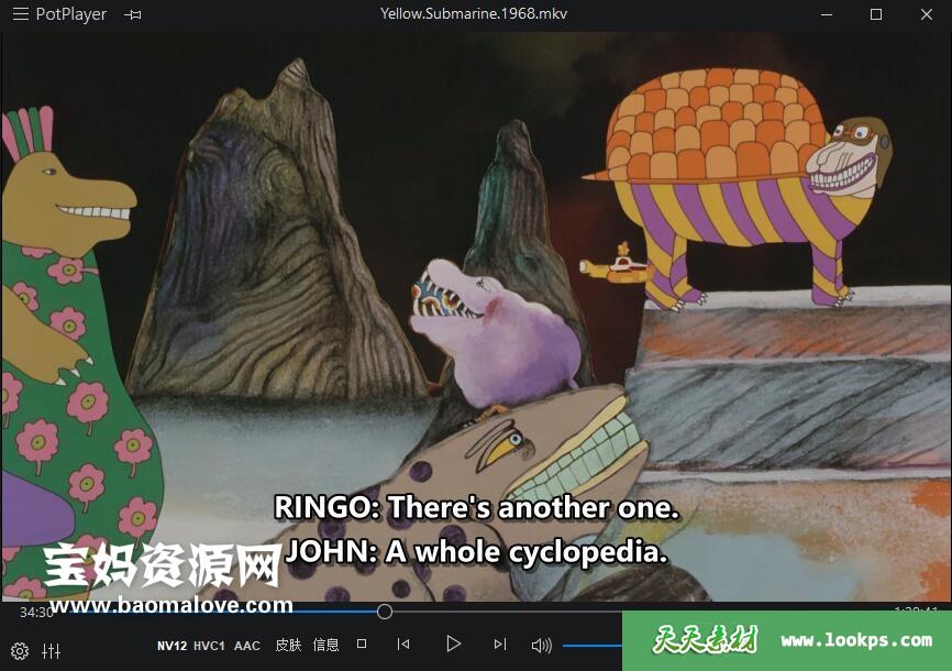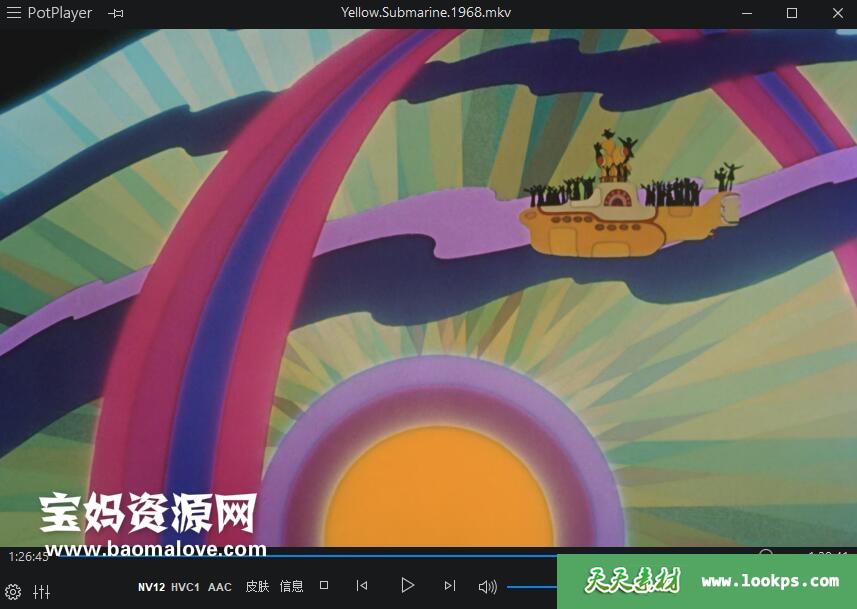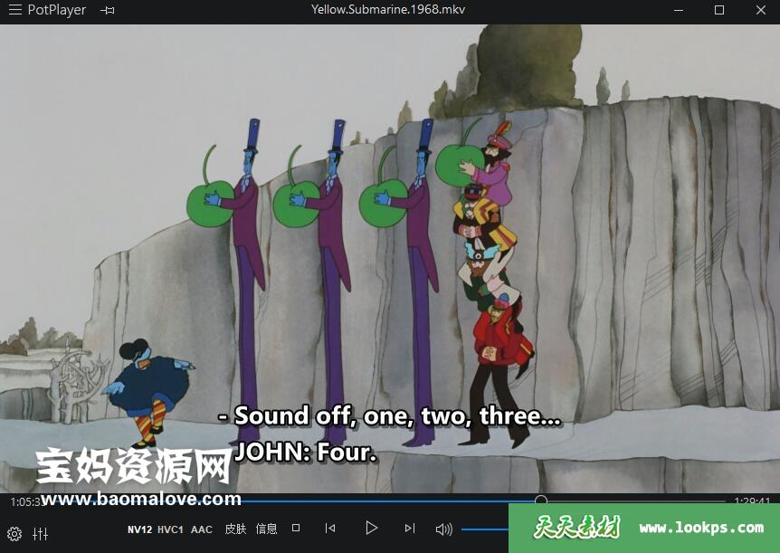 天天资源网收录的动画电影《黄色潜水艇 Yellow Submarine》,英语发音,内置英文字幕(可以下载后使用播放器设置字幕字体大小颜色或者关闭字幕);H265视频编码,资源大小约1.39G,1080P高清MKV视频格式,可以在电视机或电脑、平板、IPAD、早教机、手机等各种智能设备播放,提供百度云网盘下载。