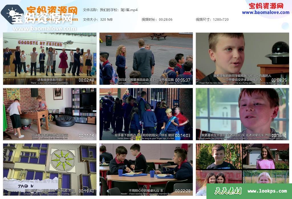 天天资源网收录的纪录片《我们的学校 Our School》,全部15集,英语发音,中英文字幕;资源总大小约4.68G,单集播放时长约28分钟,720P高清MP4视频格式,可以在电视机或电脑、平板、IPAD、早教机、手机等各种设备播放,提供百度云网盘下载。