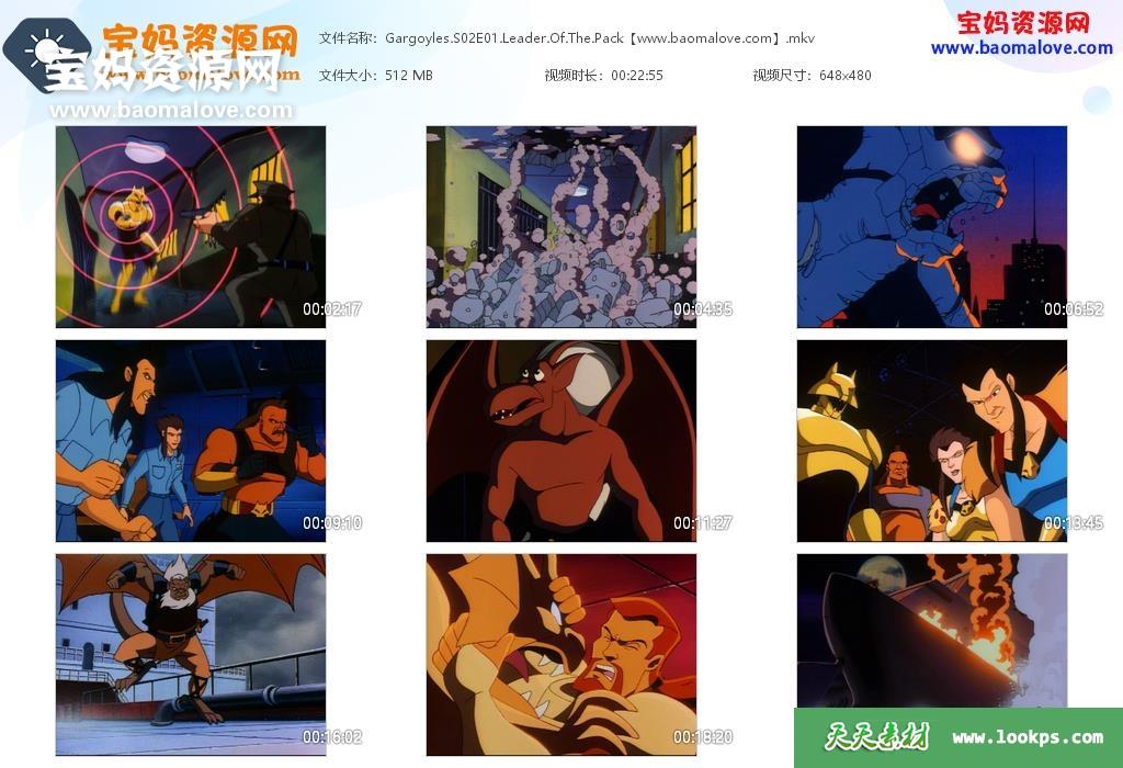 天天资源网收录的动画片《Gargoyles》夜行神龙英文版 第二季,全部52集,英语发音,内置英文字幕(可以下载后使用播放器选择设置字幕或者关闭字幕);资源总大小约25.9G,单集播放时长约23分钟,480P标清MKV视频格式,可以在电视机或电脑、平板、IPAD、早教机、手机等各种智能设备播放,提供百度云网盘下载。