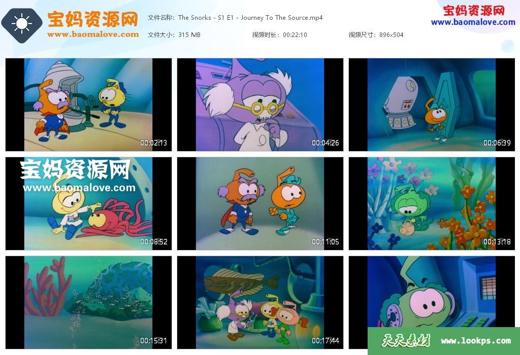 天天资源网收录的动画片《Snorks》海底小精灵英文版第1~4季,全部65集,英语发音,无字幕;资源总大小约14.7G,单集播放时长约22分钟,504P标清MP4视频格式,可以在电视机或电脑、平板、IPAD、早教机、手机等各种智能设备播放,提供百度云网盘下载。