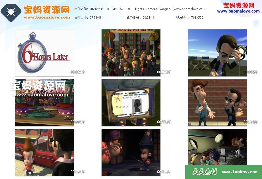 天天资源网收录的动画片《The Adventures of Jimmy Neutron, Boy Genius》天才小子吉米英文版 第三季,全部23集,英语发音,无字幕;资源总大小约4.76G,单集播放时长约12~23分钟,576P标清MP4视频格式,可以在电视机或电脑、平板、IPAD、早教机、手机等各种智能设备播放,提供百度云网盘下载。