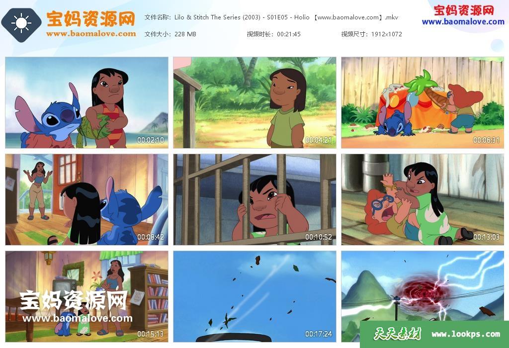 天天资源网收录的动画片《Lilo & Stitch The Series》星际宝贝英文版 第一季,全部39集,英语发音,无字幕;X265视频编码,资源总大小约8.7G,单集播放时长约22分钟,1080P高清MKV视频格式,可以在电视机或电脑、平板、IPAD、早教机、手机等各种智能设备播放,提供百度云网盘下载。