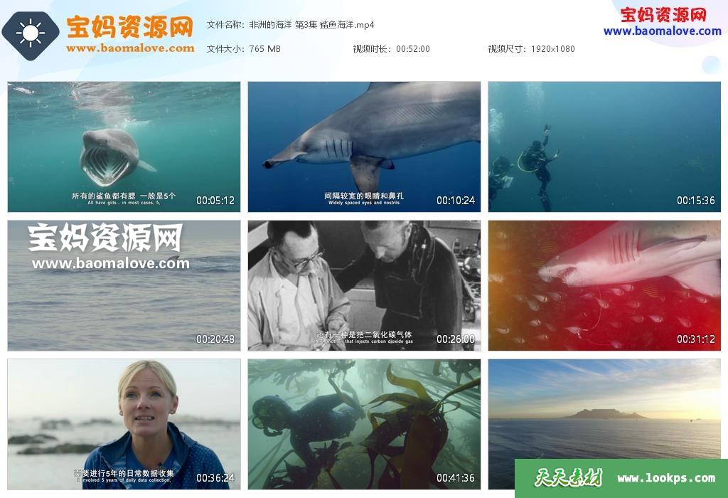天天资源网收录的纪录片《非洲的海洋 Oceans Africa》,全部3集,英语发音,中英文字幕;资源总大小约2.32G,单集播放时长约52分钟,1080P高清MP4视频格式,可以在电视机或电脑、平板、IPAD、早教机、手机等各种设备播放,提供百度云网盘下载。