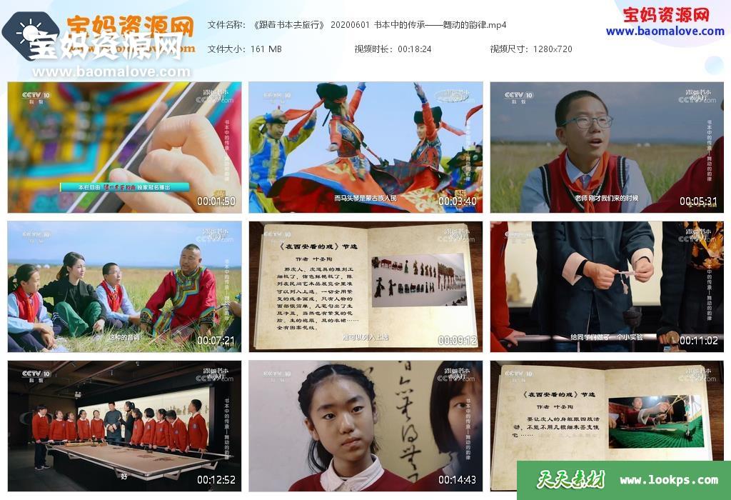 天天资源网收录的纪录片《跟着书本去旅行2020年6月》,全部24集,国语发音,中文字幕;资源总大小约4G,单集播放时长约18分钟,720P高清MP4视频格式,可以在电视机或电脑、平板、IPAD、早教机、手机等各种智能设备播放,提供百度云网盘下载。