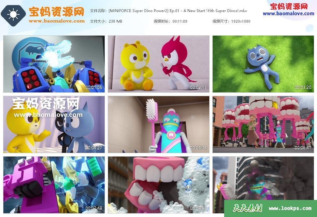 天天资源网收录的动画片《MINIFORCE Super Dino Power》迷你特工队之超级恐龙力量英文版 第二季,全部26集,英语发音,内置英文字幕(可以下载后使用播放器选择字幕或者关闭字幕);资源总大小约4.88G,单集播放时长约11分钟,1080P高清MKV视频格式,可以在电视机或电脑、平板、IPAD、早教机、手机等各种设备播放,提供百度云网盘下载。