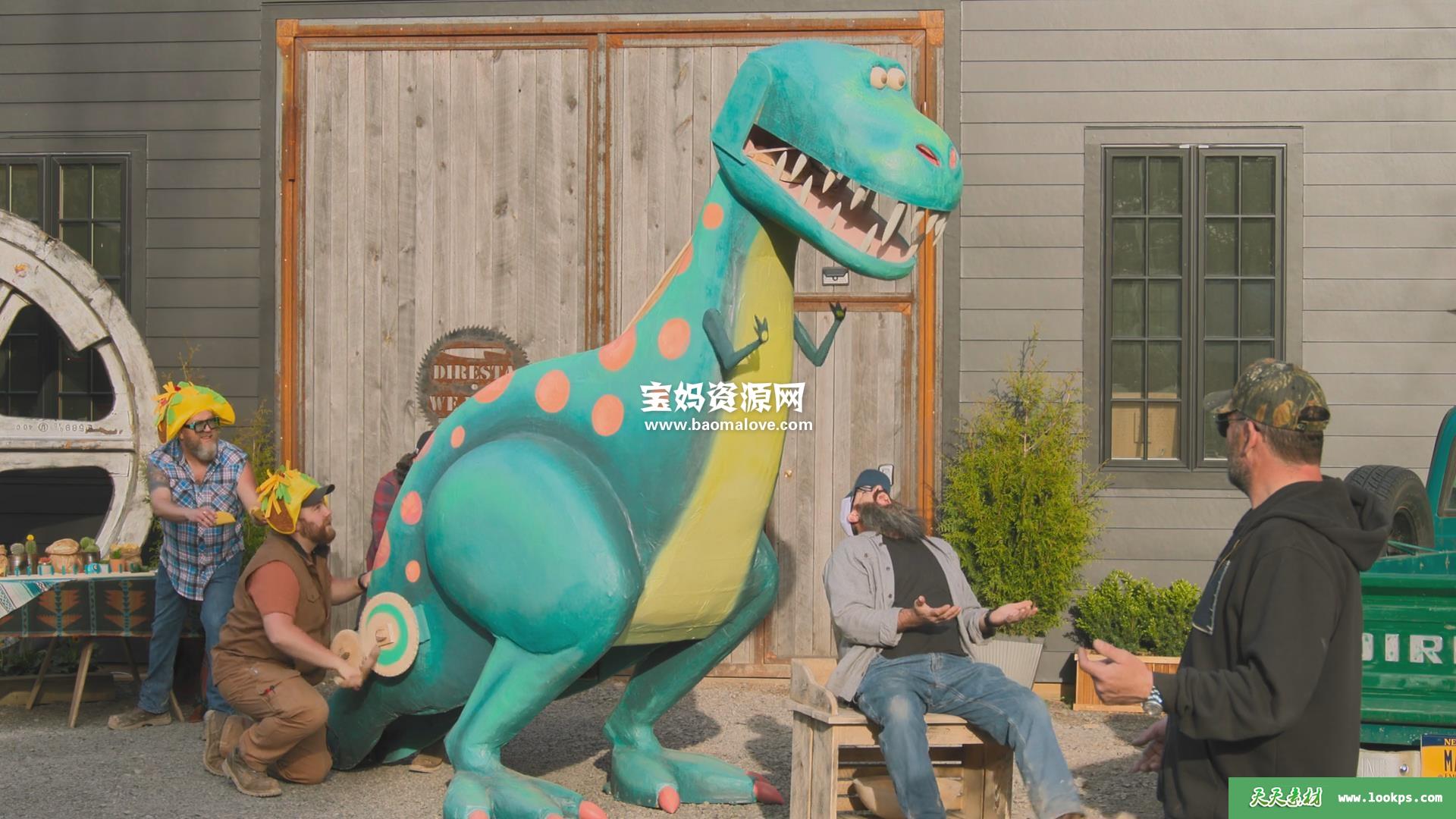 A couple of kids give Jimmy and his crew of merry makers a Jurassic task: build a 12-foot-tall wooden dinosaur that spits candy tacos.
