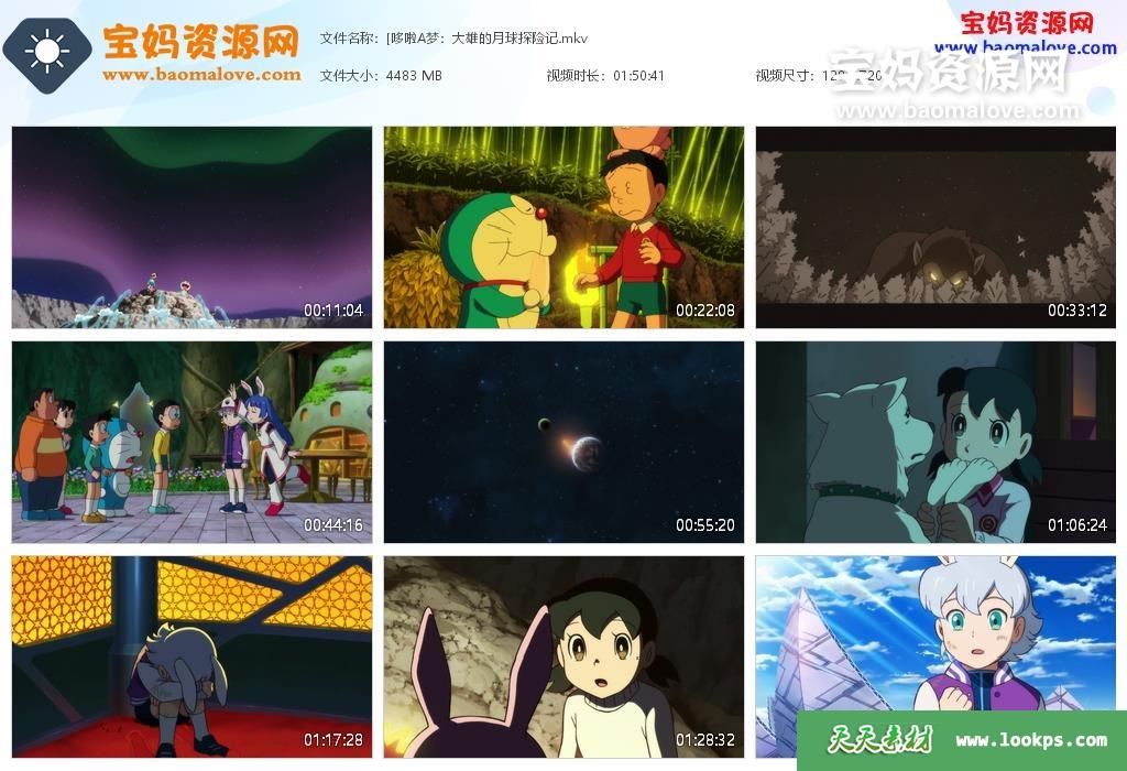 天天资源网收录的动画电影《哆啦A梦:大雄的月球探险记》,国粤台日四语发音,内置中文字幕(可以下载后使用播放器选择设置字幕或者关闭字幕);资源大小约4.37G,720P高清MKV视频格式,可以在电视机或电脑、平板、IPAD、早教机、手机等各种设备播放,提供百度云网盘下载。