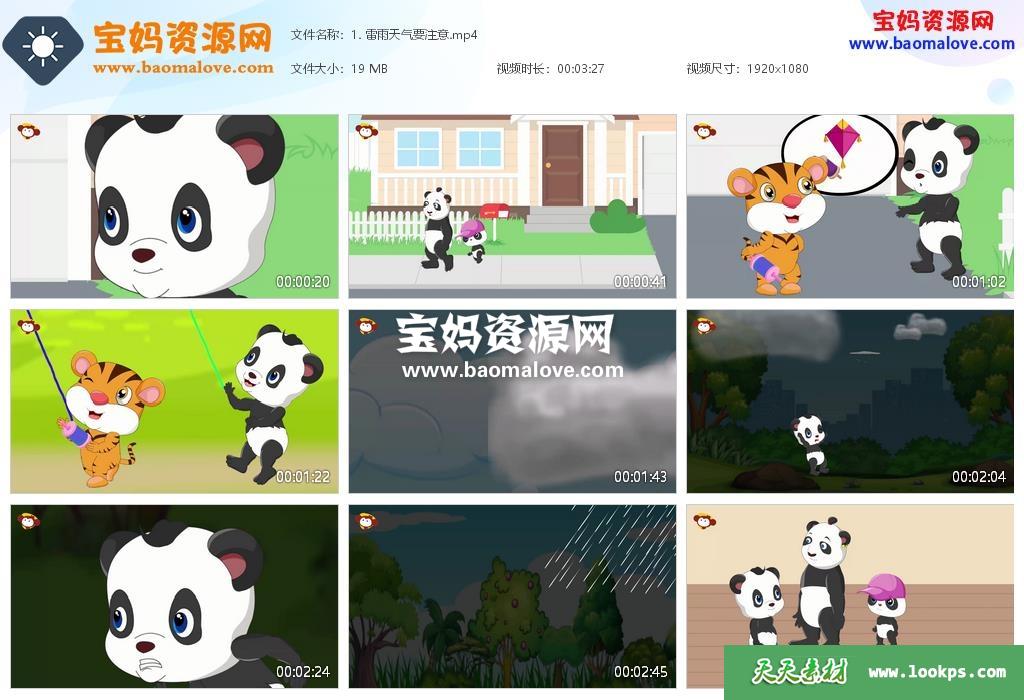 天天资源网收录的动画片《熊猫之家》,全部50集,默片无对白,无字幕;资源总大小约1.07,单集播放时长约3分钟,1080P高清MP4视频格式,可以在电视机或电脑、平板、IPAD、早教机、手机等各种智能设备播放,提供百度云网盘下载。