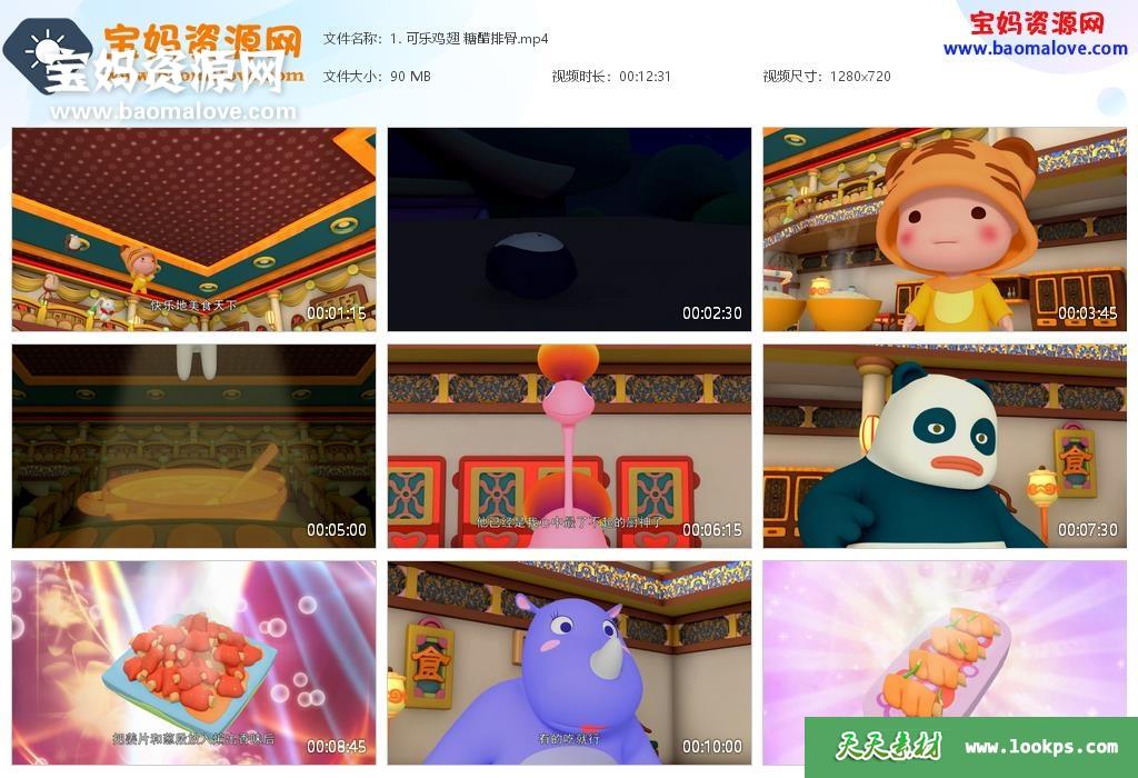 天天资源网收录的动画片《小厨神逗逗》,全部52集,国语发音,中文字幕;资源总大小4.28G,单集播放时长约12分钟,720P高清MP4视频格式,可以在电视机或电脑、平板、IPAD、早教机、手机等各种智能设备播放,提供百度云网盘下载。