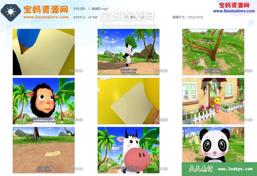 天天资源网收录的动画片《小宝贝布姆之自然儿歌》,全部30集,英语发音,中英文字幕;资源总大小0.99G,单集播放时长约1~2分钟,1080P高清MP4视频格式,可以在电视机或电脑、平板、IPAD、早教机、手机等各种设备播放,提供百度云网盘下载。