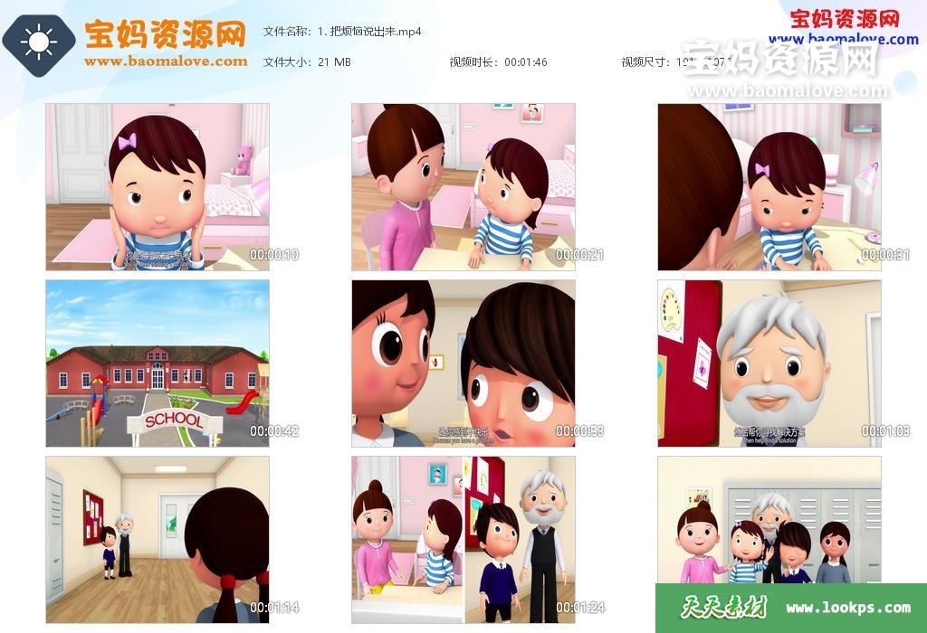 天天资源网收录的动画片《小宝贝布姆之好习惯儿歌》,全部57集,英语发音,中英文字幕;资源总大小1.54G,单集播放时长约1~2分钟,1080P高清MP4视频格式,可以在电视机或电脑、平板、IPAD、早教机、手机等各种设备播放,提供百度云网盘下载。