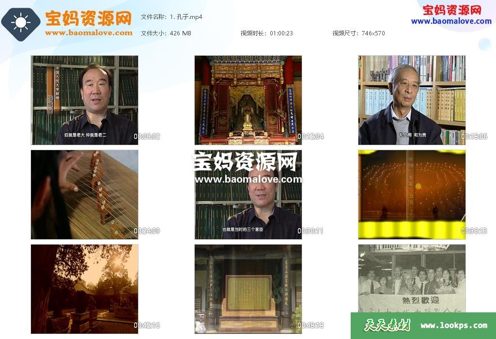 天天资源网收录的纪录片《中国古代文化圣贤》,全部6集,国语发音,中文字幕;资源总大小约2.11G,单集播放时长约60分钟,570P标清MP4视频格式,可以在电视机或电脑、平板、IPAD、早教机、手机等各种智能设备播放,提供百度云网盘下载。