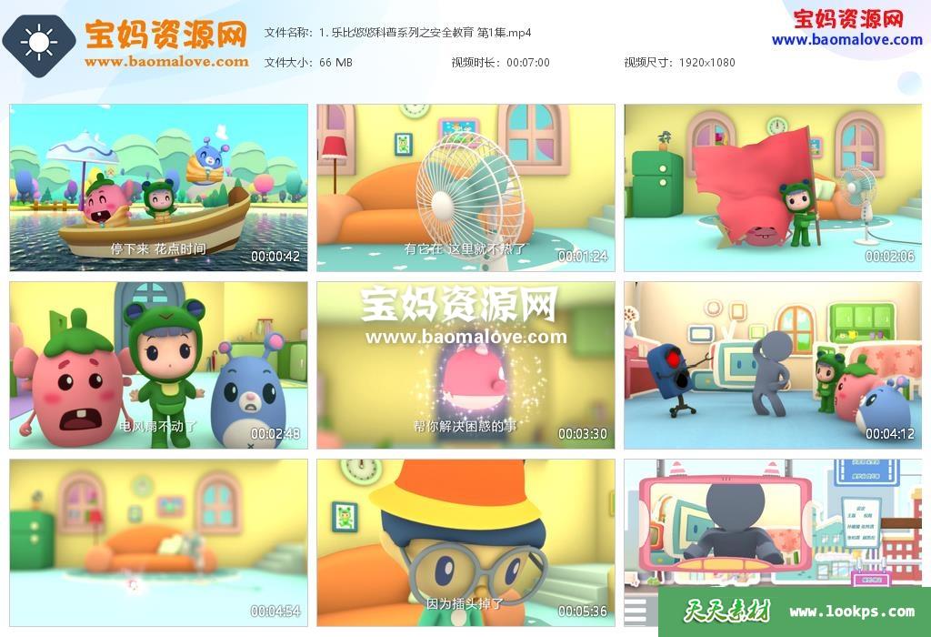 天天资源网收录的动画片《乐比悠悠系列之安全教育》,全部52集,国语发音,中文字幕;资源总大小4.67G,单集播放时长约7分钟,1080P高清MP4视频格式,可以在电视机或电脑、平板、IPAD、早教机、手机等各种智能设备播放,提供百度云网盘下载。
