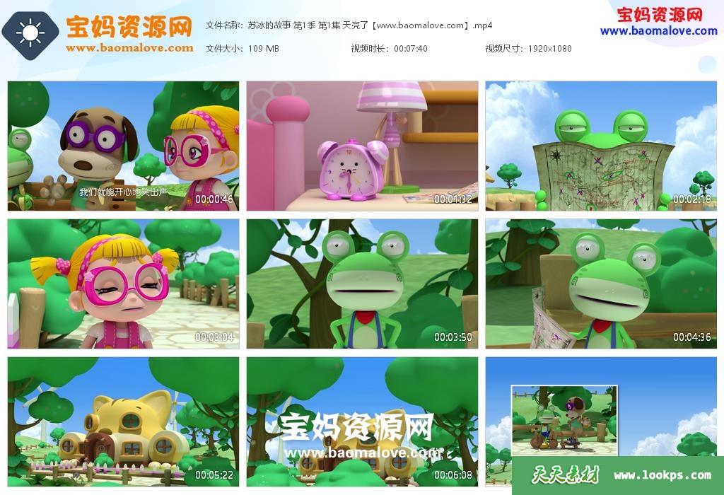 天天资源网收录的动画片《苏冰的故事》第一季,全部64集,国语发音,无字幕;资源总大小5.55G,单集播放时长约7分钟,1080P高清MP4格式,可以在电视机或电脑、平板、IPAD、早教机、手机等各种设备播放,提供百度云网盘下载。