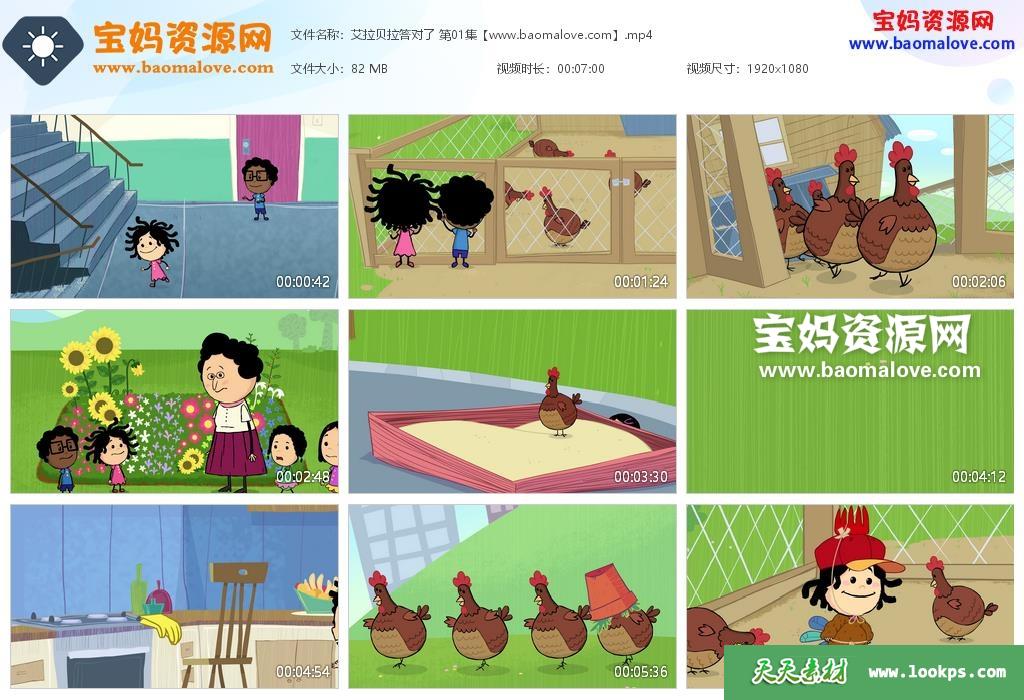 天天资源网收录的动画片《艾拉贝拉答对了》Ella Bella Bingo中文版,全部26集,国语发音,无字幕;资源总大小约1.83G,单集播放时长约7分钟,1080P高清MP4视频格式,可以在电视机或电脑、平板、IPAD、早教机、手机等各种设备播放,提供百度云网盘下载。
