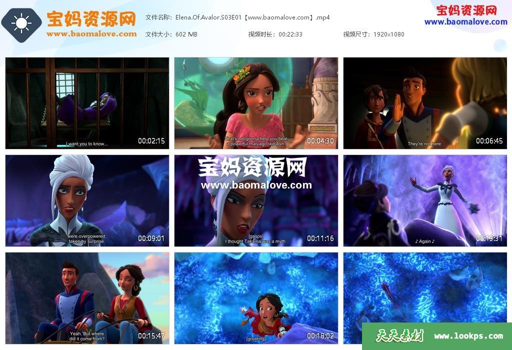 天天资源网收录的动画片《Elena of Avalor》艾莲娜公主英文版 第三季,全部31集,英语发音,英文字幕;资源总大小约21.3G,单集播放时长约22分钟,1080P高清MP4视频格式,可以在电视机或电脑、平板、IPAD、早教机、手机等各种智能设备播放,提供百度云网盘下载。