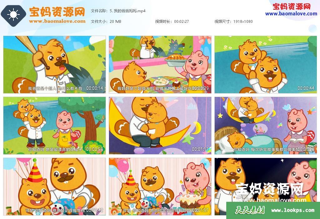 天天资源网收录的动画片《贝瓦成长乐园之贝瓦童书馆》,全部28集,国语发音,中文字幕;资源总大小569M,单集播放时长约1~6分钟,1080P高清MP4视频格式,可以在电视机或电脑、平板、IPAD、早教机、手机等各种智能设备播放,提供百度云网盘下载。
