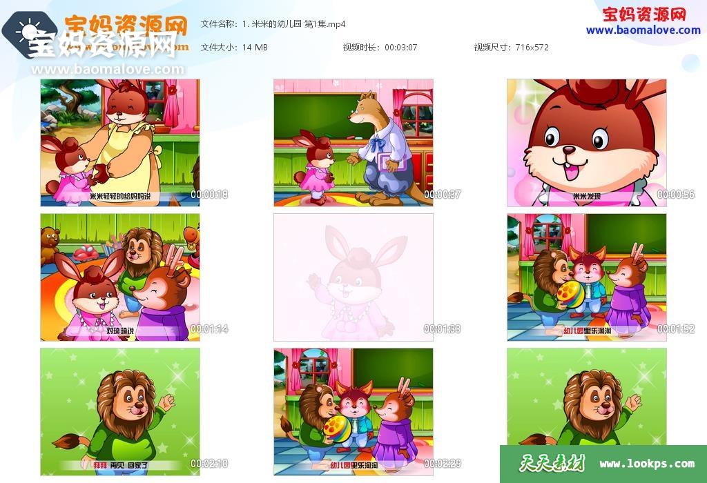 天天资源网收录的动画片《米米的幼儿园》,全部64集,国语发音,中文字幕;资源总大小约0.99G,单集播放时长约3~6分钟,576P标清MP4视频格式,可以在电视机或电脑、平板、IPAD、早教机、手机等各种设备播放,提供百度云网盘下载。