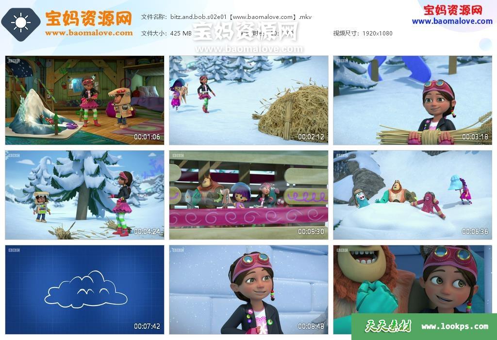 天天资源网收录的动画片《Bitz and Bob》小贝大发明英文版 第二季,全部21集,英语发音,内置英文字幕(可以下载后使用播放器选择字幕或者切换关闭字幕);资源总大小约10.2G,单集播放时长约11分钟,1080P高清MKV视频格式,可以在电视机或电脑、平板、IPAD、早教机、手机等各种智能设备播放,提供百度云网盘下载。