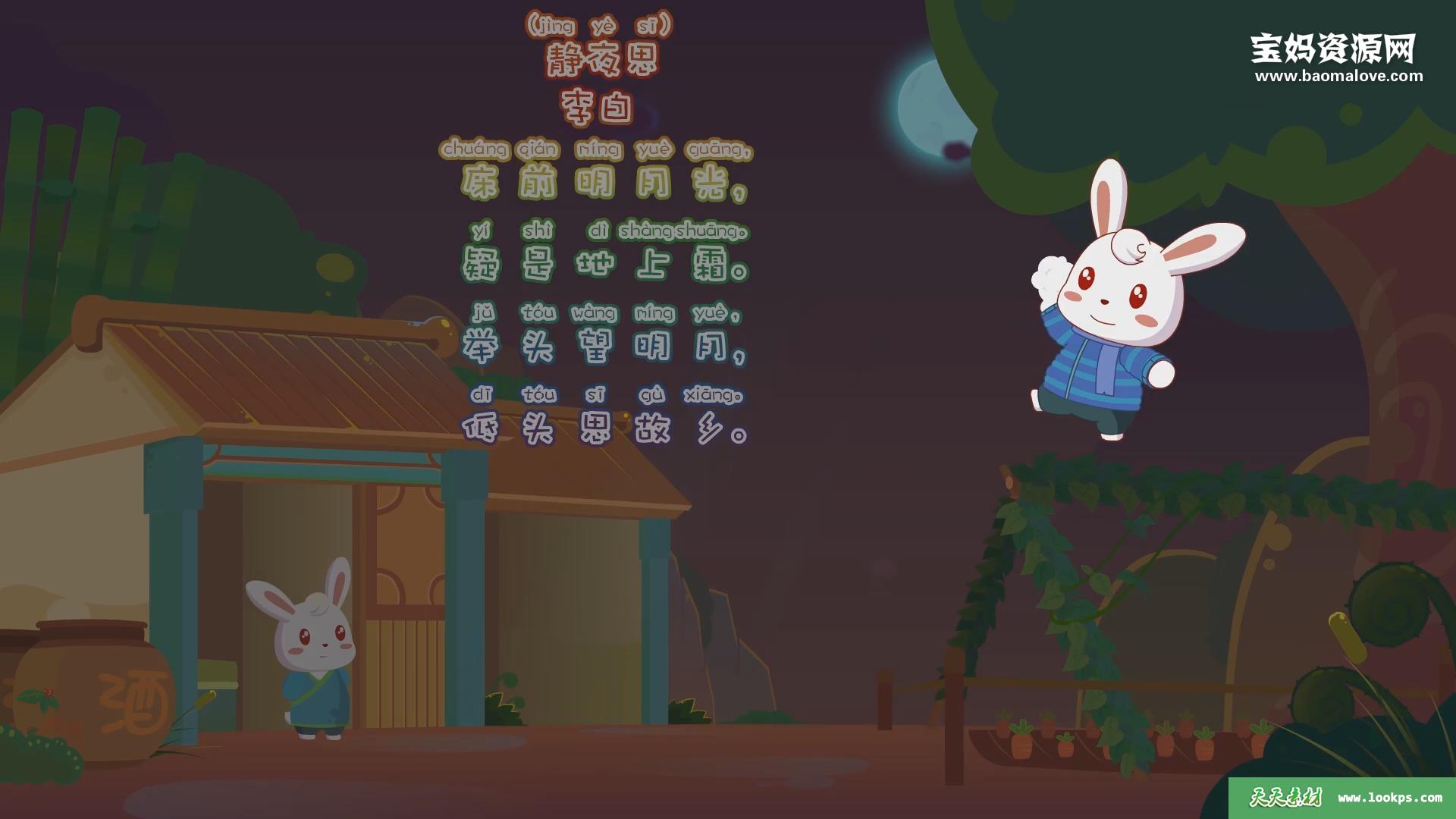 天天资源网收录的动画片《兔小贝新古诗》,全部71集,国语发音,无字幕;资源总大小868M,单集播放时长约1分钟,1080P高清MP4视频格式,可以在电视机或电脑、平板、IPAD、早教机、手机等各种智能设备播放,提供百度云网盘下载。