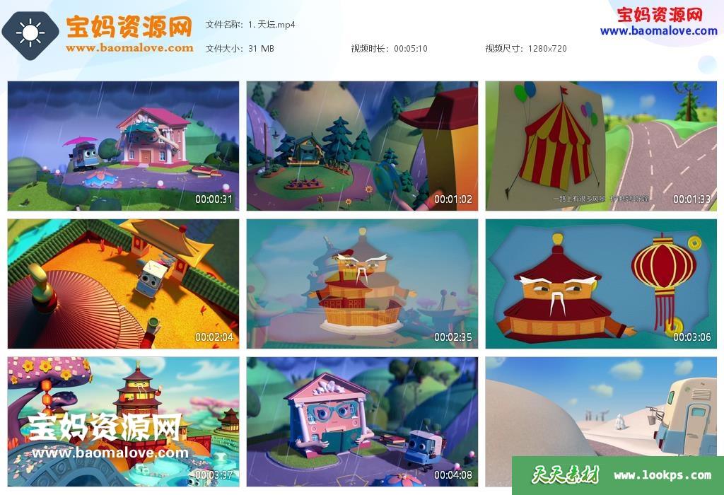 天天资源网收录的动画片《房车环游记》,全部52集,国语发音,无字幕;资源总大小约1.93G,单集播放时长约5分钟,720P高清MP4视频格式,可以在电视机或电脑、平板、IPAD、早教机、手机等各种智能设备播放,提供百度云网盘下载。