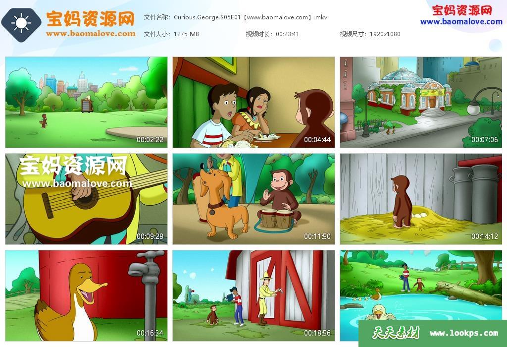 天天资源网收录的动画片《Curious George》好奇的乔治英文版 第五季,全部10集,英语发音,内置英文字幕(可以下载后使用播放器选择字幕或者切换关闭字幕);资源总大小约12.5G,单集播放时长约24分钟,1080P高清MKV视频格式,可以在电视机或电脑、平板、IPAD、早教机、手机等各种智能设备播放,提供百度云网盘下载。