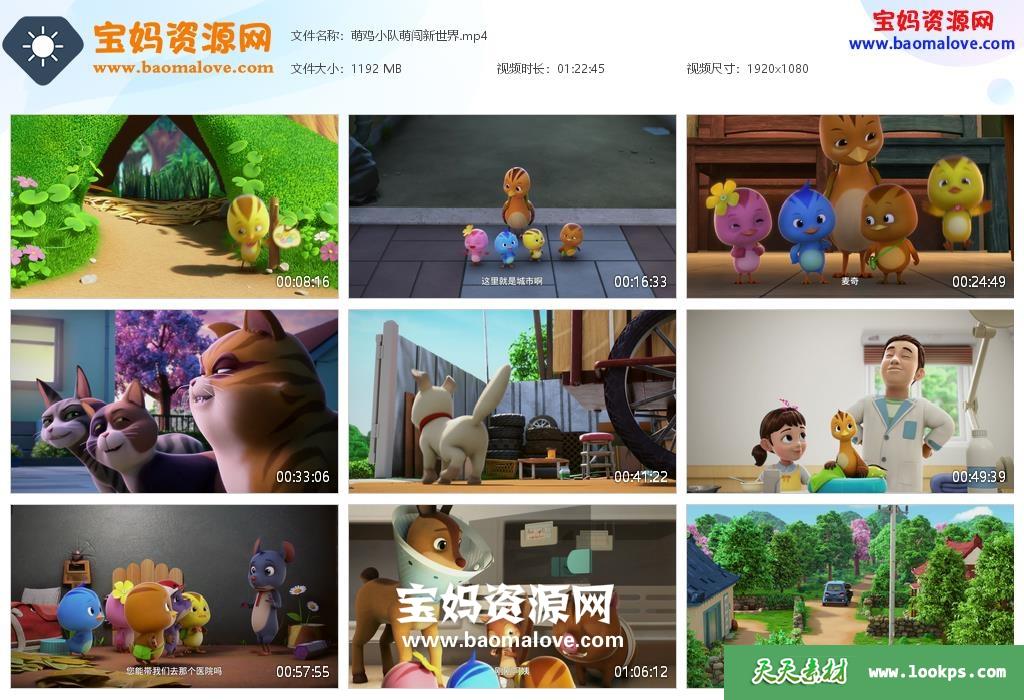 天天资源网收录的动画电影《萌鸡小队:萌闯新世界》,国语发音,中文字幕;资源大小约1.16G,1080P高清MP4视频格式,可以在电视机或电脑、平板、IPAD、早教机、手机等各种设备播放,提供百度云网盘下载。