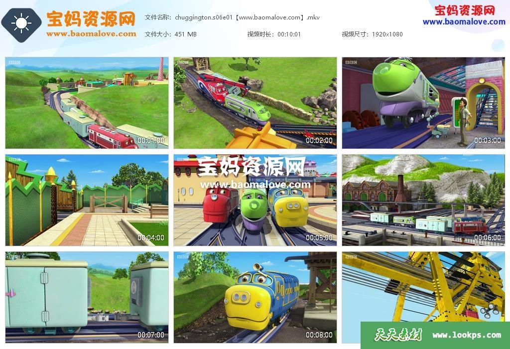 天天资源网收录的动画片《Chuggington》恰恰特快车英文版 第六季,全部46集,英语发音,内置英文字幕(可以下载后使用播放器选择字幕或者切换关闭字幕);资源总大小约18.64G,单集播放时长约10分钟,1080P高清MKV视频格式,可以在电视机或电脑、平板、IPAD、早教机、手机等各种智能设备播放,提供百度云网盘下载。