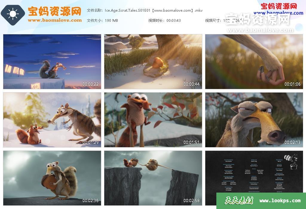 天天资源网收录的动画片《Ice Age: Scrat Tales》冰川时代:斯克特的传说英文版 第一季,全部6集,英语发音,内置英文字幕(可以下载后使用播放器选择字幕或者关闭字幕);资源总大小约1.07G,单集播放时长约3~4分钟,1080P高清MKV视频格式,可以在电视机或电脑、平板、IPAD、早教机、手机等各种智能设备播放,提供百度云网盘下载。