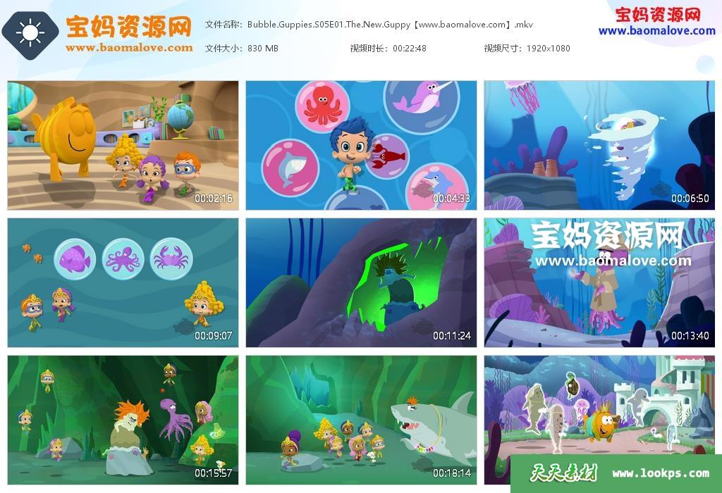 天天资源网收录的动画片《Bubble Guppies》泡泡孔雀鱼英文版 第五季,全部18集,英语发音,内置英文字幕(可以下载后使用播放器选择字幕或者关闭字幕);资源总大小约14.3G,单集播放时长约23分钟,1080P高清MKV视频格式,可以在电视机或电脑、平板、IPAD、早教机、手机等各种智能设备播放,提供百度云网盘下载。