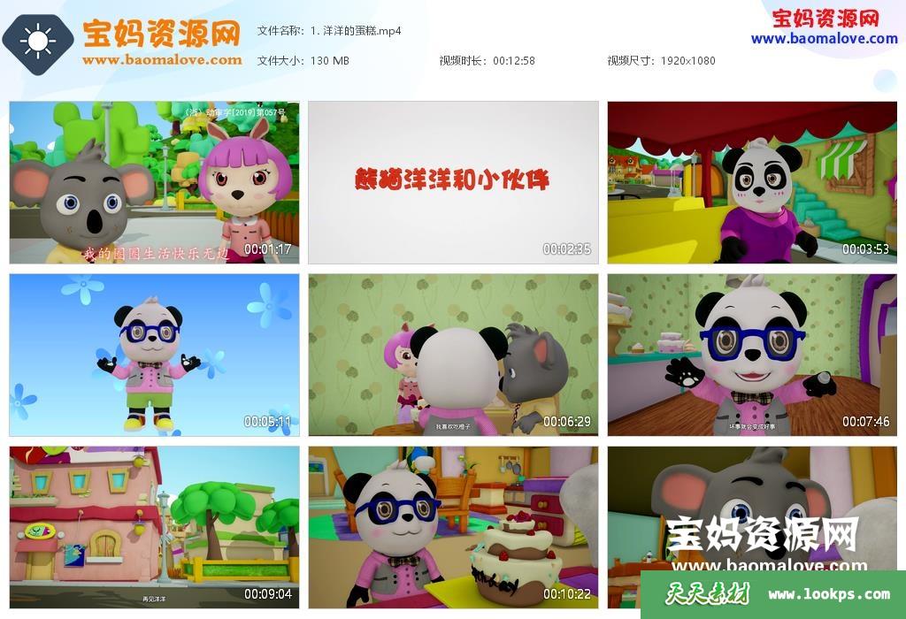 天天资源网收录的动画片《熊猫洋洋和小伙伴》,全部26集,国语发音,中文字幕;资源总大小约3.77G,单集播放时长约13分钟,1080P高清MP4视频格式,可以在电视机或电脑、平板、IPAD、早教机、手机等各种智能设备播放,提供百度云网盘下载。