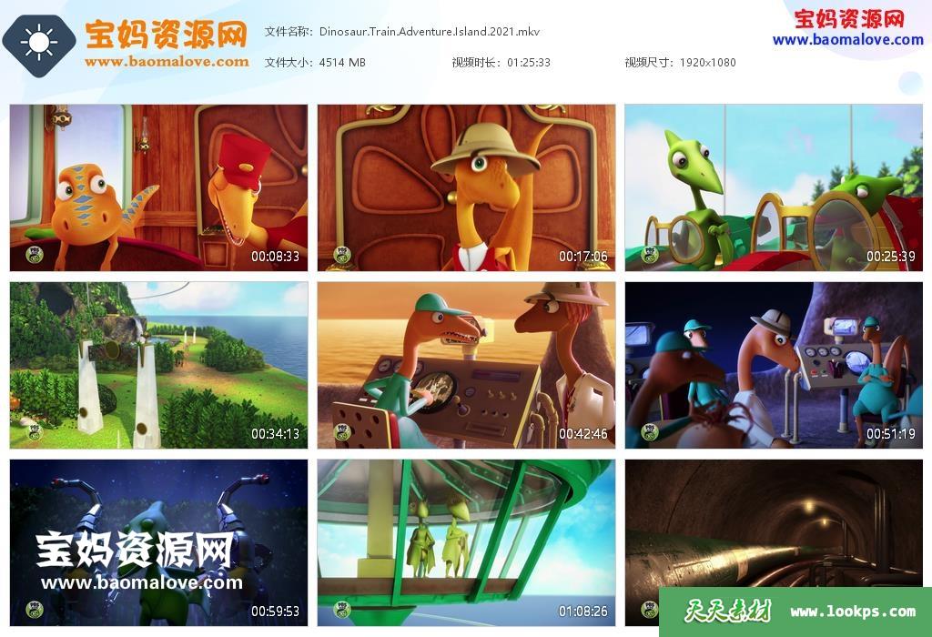 天天资源网收录的动画电影《恐龙火车:冒险岛 Dinosaur Train: Adventure Island》,英语发音,内置英文字幕(可以下载后使用播放器设置字幕字体大小颜色或者关闭字幕);资源大小约4.4G,1080P高清MKV视频格式,可以在电视机或电脑、平板、IPAD、早教机、手机等各种智能设备播放,提供百度云网盘下载。