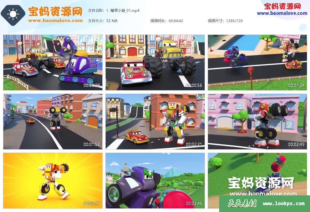 天天资源网收录的动画片《汽车城之变身卡车人》,全部52集,国语发音,无字幕;资源总大小约3.13G,单集播放时长约4分钟,720P高清MP4视频格式,可以在电视机或电脑、平板、IPAD、早教机、手机等各种智能设备播放,提供百度云网盘下载。