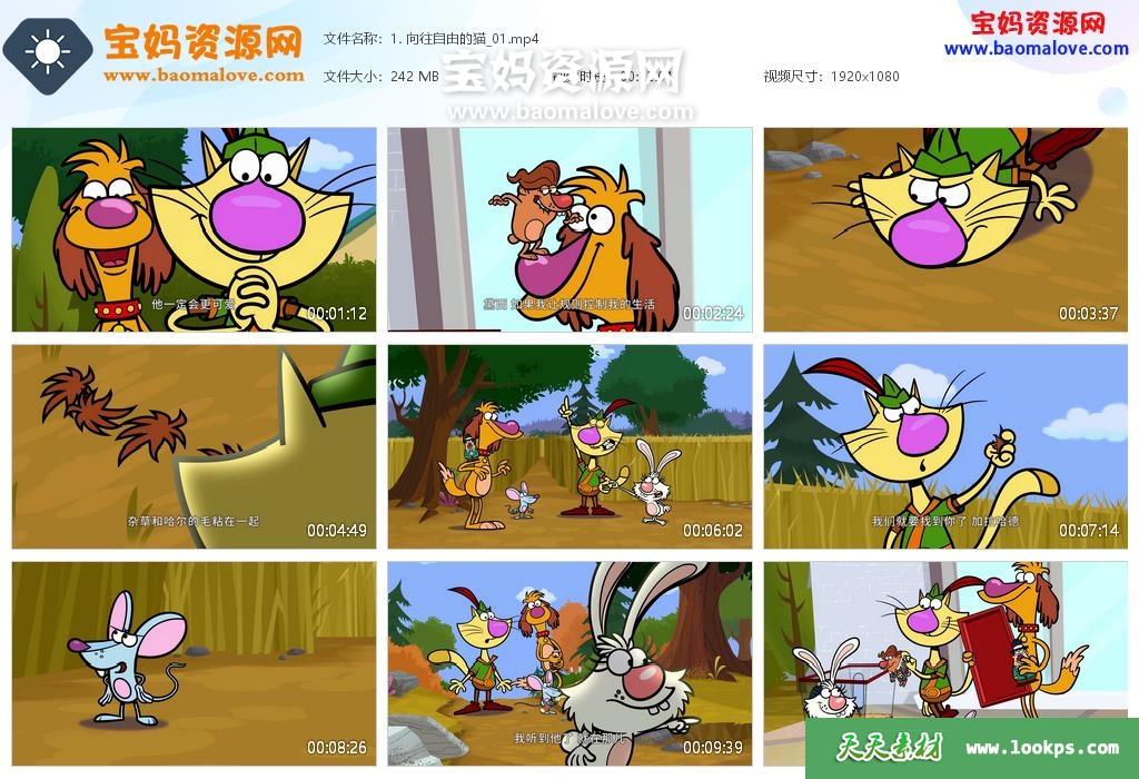 天天资源网收录的动画片《向往自由的猫》Nature Cat中文版,全部80集,国语发音,中文字幕;资源总大小约15.1G,单集播放时长约12分钟,1080P高清MP4视频格式,可以在电视机或电脑、平板、IPAD、早教机、手机等各种智能设备播放,提供百度云网盘下载。