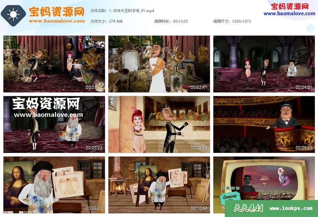 天天资源网收录的动画片《吹牛大王科学秀》,全部26集,国语发音,无字幕;资源总大小约6.23G,单集播放时长约13分钟,1080P高清MP4视频格式,可以在电视机或电脑、平板、IPAD、早教机、手机等各种智能设备播放,提供百度云网盘下载。