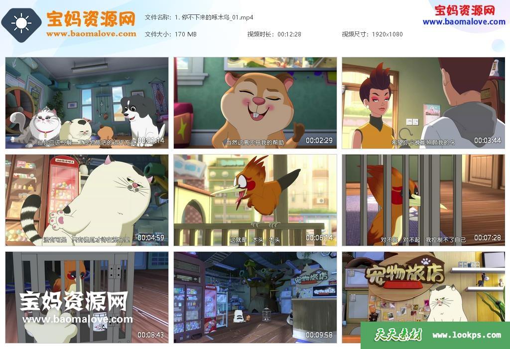 天天资源网收录的动画片《宠物旅店》,全部26集,国语发音,中文字幕;资源总大小约2.55G,单集播放时长约12分钟,1080P高清MP4视频格式,可以在电视机或电脑、平板、IPAD、早教机、手机等各种智能设备播放,提供百度云网盘下载。