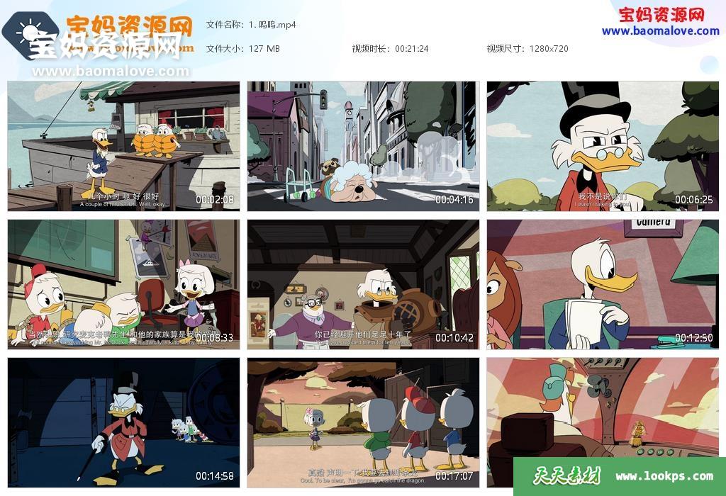 天天资源网收录的动画片《新唐老鸭俱乐部》Ducktales中文版 第一季,全部25集,国语发音,中英文字幕;资源总大小约3.41G,单集播放时长约21分钟,720P高清MP4视频格式,可以在电视机或电脑、平板、IPAD、早教机、手机等各种智能设备播放,提供百度云网盘下载。