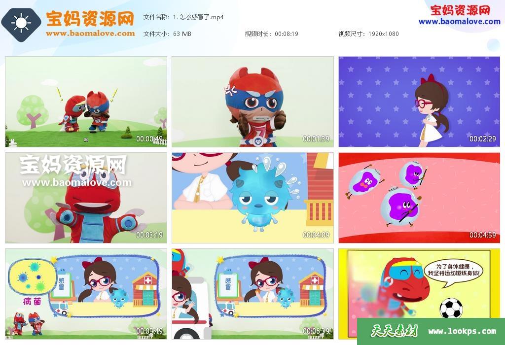 天天资源网收录的动画片《帮帮龙健康特工》,全部20集,国语发音,中文字幕;资源总大小约1.22G,单集播放时长约9分钟,1080P高清MP4视频格式,可以在电视机或电脑、平板、IPAD、早教机、手机等各种智能设备播放,提供百度云网盘下载。