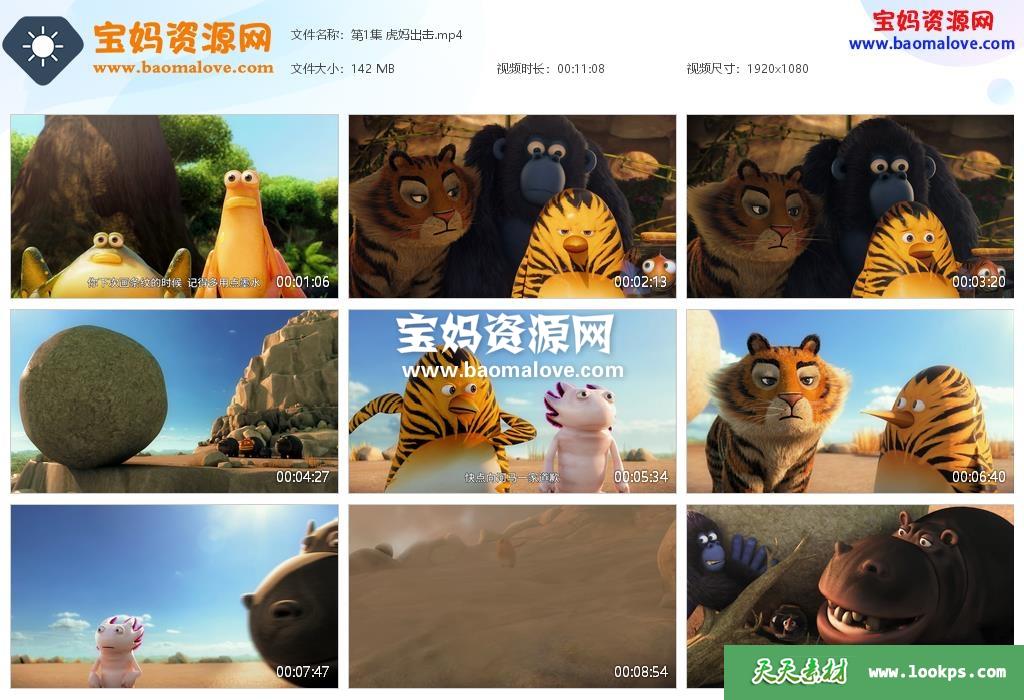 天天资源网收录的动画片《丛林特战队:火速救援》The Jungle Bunch中文版 第三季,全部52集,国语发音,中文字幕;资源总大小约8.37G,单集播放时长约11分钟,1080P高清MP4视频格式,可以在电视机或电脑、平板、IPAD、早教机、手机等各种智能设备播放,提供百度云网盘下载。