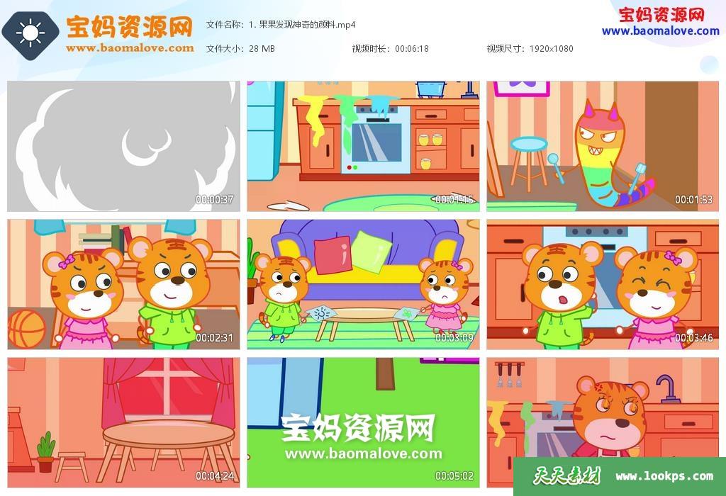 天天资源网收录的动画片《小虎果果一家》第六季,全部20集,国语发音,无字幕;资源总大小约721M,单集播放时长约6分钟,1080P高清MP4视频格式,可以在电视机或电脑、平板、IPAD、早教机、手机等各种智能设备播放,提供百度云网盘下载。